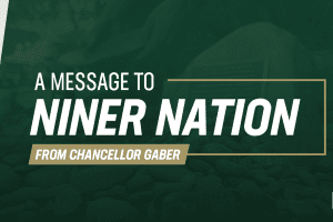 Dear Niner Family, As we start Thanksgiving week, I extend my personal appreciation to each of you – students, faculty...